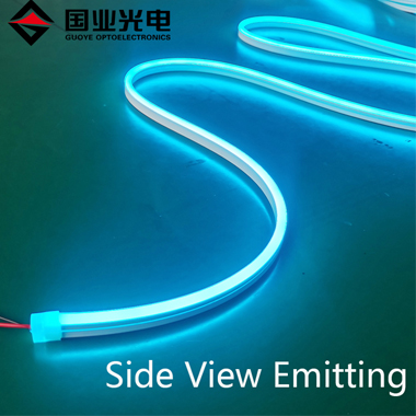 The side view emitting neon flex light strip has the advantage that it can provide softer and uniform light, does not produce obvious light spots, can create an elegant and warm atmosphere, and this light strip can be hidden in some narrow Spaces, only exposing the light, playing the dual role of decoration and lighting, making the space more hierarchical and aesthetic.